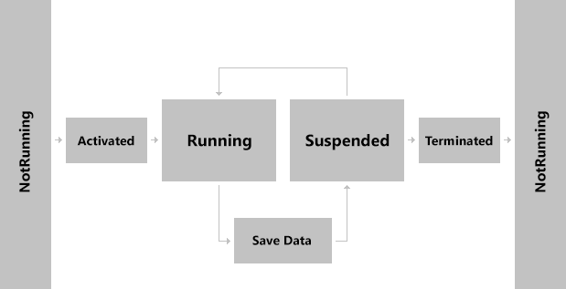 However, the user does not always switch back to the game right away. Windows may at any time decide the game needs to close to make more memory available for other apps. The user may also close the app directly. At this point, the game is Terminated, and is returned to the NotRunning state.